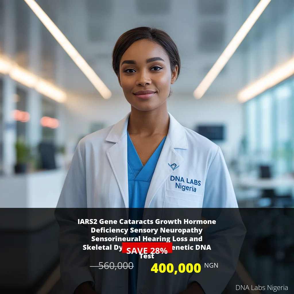The IARS2 Gene Cataracts Growth Hormone Deficiency Sensory Neuropathy Sensorineural Hearing Loss and Skeletal Dysplasia NGS Genetic DNA Test is crucial for diagnosing genetic disorders associated with the IARS2 gene. Priced at 560000 NGN, this test can help identify underlying genetic conditions that may lead to significant health challenges, enabling timely interventions.