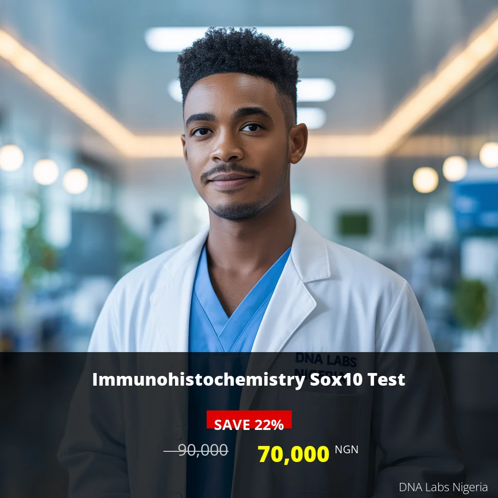 The Immunohistochemistry Sox10 Test is crucial for diagnosing certain types of cancer. Priced at 70,000 NGN, it helps oncologists and pathologists identify the presence of Sox10 protein in tumor tissues, aiding in the determination of cancer type and prognosis. With a turnaround time of 5-7 days, this test is vital for effective treatment planning. Book your test today!